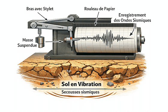 Principe d’un sismographe : Image générée par IA