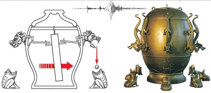 Principe et réplique du sismoscope de Zhang-Heng (source 10 inventions chinoises en avance sur leur temps - Chinois Tips)